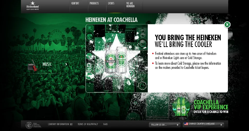 Perhaps the most recognized music festival in the world, the hardest part of our yearly assignment was not generating awareness of the brand’s sponsorship or promotional ticket giveaways, but rather, ensuring sales in support of their Cold Storage offering.